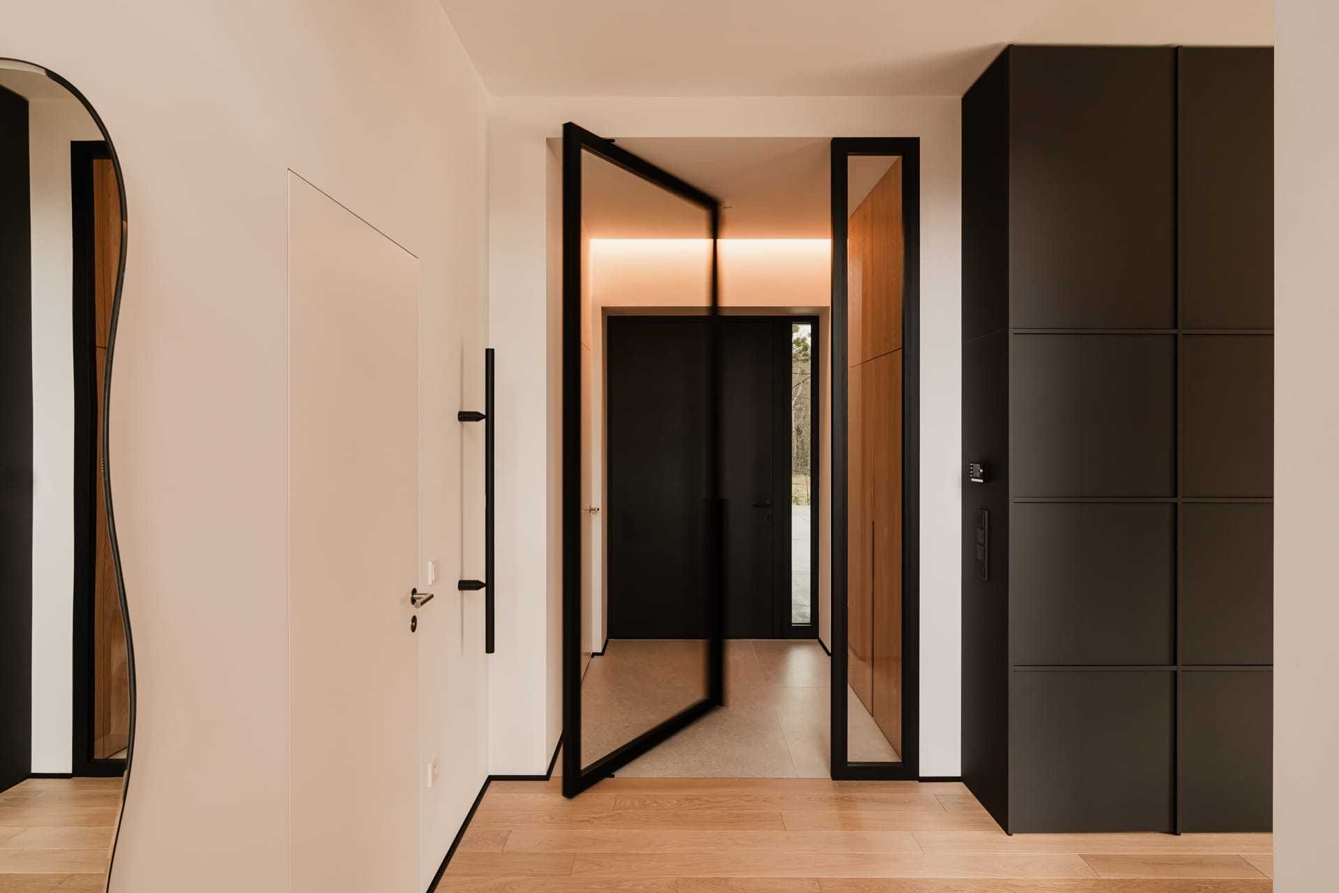 W opozycji do przyrodniczego bogactwa otaczającego dom, w jego wnętrzu dominuje minimalizm, jednak pozbawiony surowości. Przestrzeń ocieplają subtelne kolory, różnorodne faktury i naturalne materiały – szczotkowana stal nierdzewna, satynowy kamień, drewno oraz dębowe forniry o surowym wykończeniu. Świadomie zrezygnowano z ozdobników, koncentrując się na starannie dobranym wyposażeniu, głównie od polskich marek.